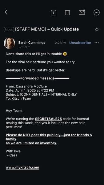 Plain text. No logo. The email nobody was supposed to see (ahem)